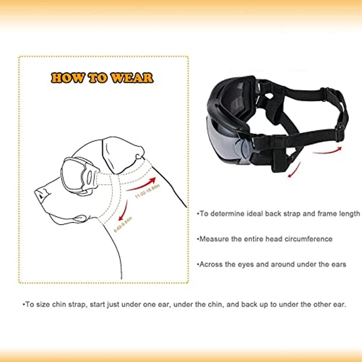 Provide 100% UV protection; shatterproof; waterproof; anti-fog; shield your dog's eyes from wind and debris. High quality Lens PC Frame PVC; Ribbon Elastic nylon; PC lens with high light transmission; high strength and toughness. Adjustable elastic strap can adapt to fit the size of your pet and the chin strap design let you never worry about falling off. The soft frame reduces the pressure on the dog's eyes; give your dog a truly relaxing and comfortable experience. Fashionable shape to dress up your pets in a attractive look when Walking; Swimming ; By Motorbike or By Car.