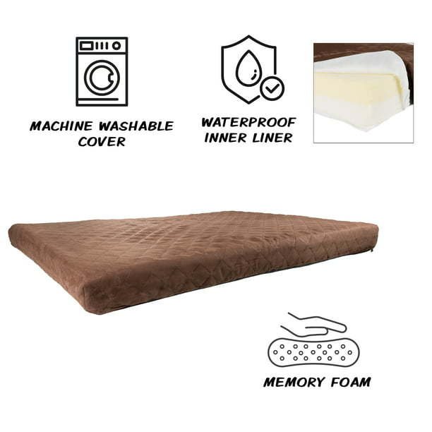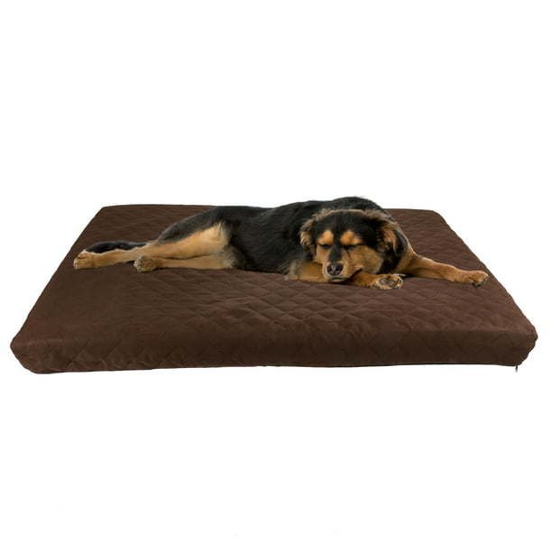 PRODUCT DETAILS – Materials: Microsuede, Polyurethane Foam, and Memory Foam. Dimensions: (L) 44' x (W) 35' x (H) 3.5'. Large Dog Bed with Removable Cover is Recommended for Pets Weighing 65-110 pounds. Color: Brown.